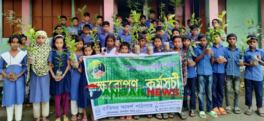 জলবায়ু পরিবর্তন মোকাবিলায় টাঙ্গাইল সদর উপজেলায় বাতিঘর আদর্শ পাঠাগারের উদ্যোগে গাছের চারা বিতরণ করা হয়েছে। বুধবার (৩ সেপ্টেম্বর) বিকালে উপজেলার রাঘবকররা সরকারি প্রাথমিক বিদ্যালয়ে শিক্ষার্থীরে মাঝে গাছের চারা বিতরণ করা হয়। প্রতিবছরের ন্যায় বৃক্ষরোপন কর্মসূচির অংশ হিসেবে স্বেচ্ছাসেবী প্রতিষ্ঠানটি ফলদ-বনজ-ঔষধি গাছের শতাধিক চারা শিক্ষার্থীদের মাঝে বিনামূল্যে বিতরণ করে।