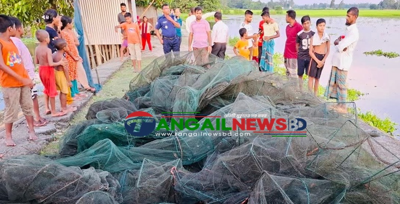 গোপালপুরে ২ হাজার মিটার অবৈধ চায়না দুয়ারী জাল জব্দ ও ধ্বংস