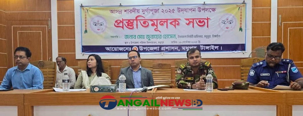 আসন্ন শারদীয় দুর্গা পূজা সুষ্ঠ, সুন্দর ও আনন্দঘন পরিবেশে উদযাপনের লক্ষ্যে টাঙ্গাইলের মধুপুর উপজেলা প্রশাসনের আয়োজনে প্রস্তুতিমূলক সভা অনুষ্ঠিত হয়েছে। মঙ্গলবার (১৬ সেপ্টেম্বর) দুপুরে মধুপুর উপজেলা পরিষদ মিলনায়তনে এ সভা অনুষ্ঠিত হয়। সভার সভাপতিত্ব করেন মধুপুর উপজেলা নির্বাহী অফিসার জুবায়ের হোসেন।