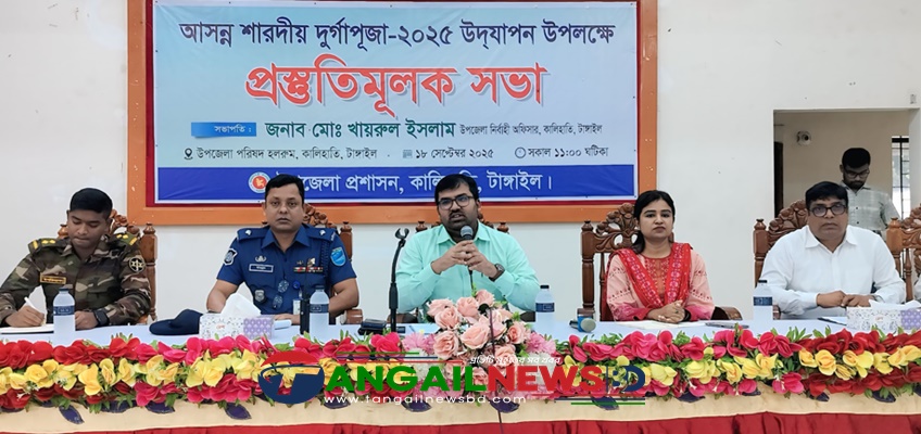 আসন্ন শারদীয় দুর্গাপূজা ঘিরে টাঙ্গাইলের কালিহাতীতে সর্বাত্মক নিরাপত্তা নিশ্চিত ও সম্প্রীতির বার্তা ছড়িয়ে দিতে প্রস্তুতিমূলক সভা অনুষ্ঠিত হয়েছে। বৃহস্পতিবার (১৮ সেপ্টেম্বর) সকালে উপজেলা পরিষদ হল রুমে এ সভার আয়োজন করে কালিহাতী উপজেলা প্রশাসন। সভায় সভাপতিত্ব করেন কালিহাতী উপজেলা নির্বাহী অফিসার (ইউএনও) খায়রুল ইসলাম।