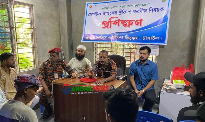 স্টাফ রিপোর্টার ॥ সেপটিক ট্যাংকের নিরাপত্তা ঝুঁকি এবং দুর্ঘটনা এড়াতে করণীয় সম্পর্কে সচেতনতা বাড়াতে টাঙ্গাইলে একটি বিশেষ প্রশিক্ষণ কর্মশালা অনুষ্ঠিত হয়েছে। শুক্রবার (১৯ সেপ্টেম্বর) সকালে টাঙ্গাইল ফায়ার সার্ভিস ও সিভিল ডিফেন্সের উদ্যোগে এই প্রশিক্ষণটি আয়োজন করা হয়। অনুষ্ঠানটি টাঙ্গাইল ময়মনসিংহ রোডের সাফ মায়াকুঞ্জে অনুষ্ঠিত হয়।