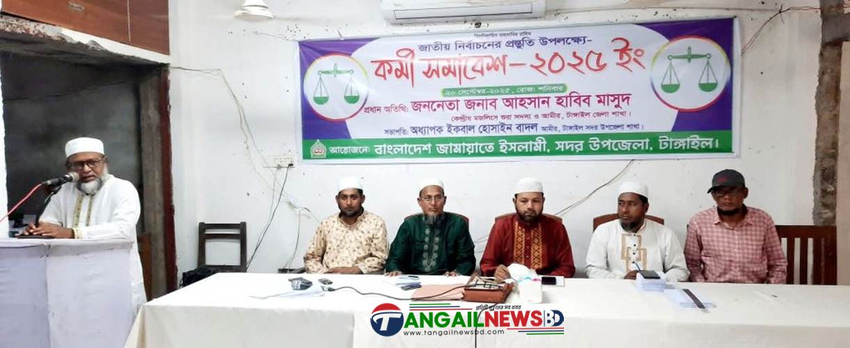 স্টাফ রিপোর্টার ॥ আসন্ন জাতীয় সংসদ নির্বাচনের প্রস্তুতি উপলক্ষ্যে টাঙ্গাইল-৫ (সদর) আসনে জামায়াতে ইসলামীর কর্মী সমাবেশ অনুষ্ঠিত হয়েছে। শনিবার (২০ সেপ্টেম্বর) টাঙ্গাইল সদর উপজেলা জামায়াতে ইসলামী এ সমাবেশের আয়োজন করে। আদর্শ সমাজ কল্যাণ পরিষদ মিলনায়তনে এ কর্মী সমাবেশ অনুষ্ঠিত হয়। কর্মী সমাবেশে প্রধান অতিথি হিসেবে উপস্থিত ছিলেন টাঙ্গাইল-৫(সদর) আসনের বাংলাদেশ জামায়াতে ইসলামী মনোনীত এমপি প্রার্থী জেলা আমীর আহসান হাবিব মাসুদ।