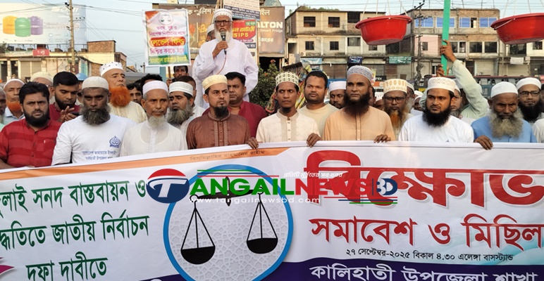 টাঙ্গাইলের কালিহাতীতে পিআর (প্রোপোরশনাল রিপ্রেজেন্টেশন) পদ্ধতিতে জাতীয় নির্বাচনসহ পাঁচ দফা দাবিতে বাংলাদেশ জামায়াতে ইসলামী উপজেলা শাখার উদ্যোগে সমাবেশ ও মিছিল অনুষ্ঠিত হয়েছে। শনিবার (২৭ সেপ্টেম্বর) বিকেল ৫টায় উত্তরবঙ্গের প্রবেশদ্বার এলেঙ্গা বাসস্ট্যান্ডের পুলিশ বক্স সংলগ্ন এলাকায় সমাবেশ অনুষ্ঠিত হয়। জুলাই জাতীয় সনদের ভিত্তিতে আগামী ফেব্রুয়ারিতে নির্বাচন, আগামী জাতীয় নির্বাচনে উভয় কক্ষে পিআর পদ্ধতি চালু, অবাধ, সুষ্ঠু ও গ্রহণযোগ্য নির্বাচনের জন্য লেভেল প্লেয়িং ফিল্ড নিশ্চিত করা, ফ্যাসিস্ট সরকারের সকল অপরাধের বিচার দৃশ্যমান করা, স্বৈরাচারের দোসর জাতীয় পার্টি ও ১৪ দলের কার্যক্রম নিষিদ্ধ করা।