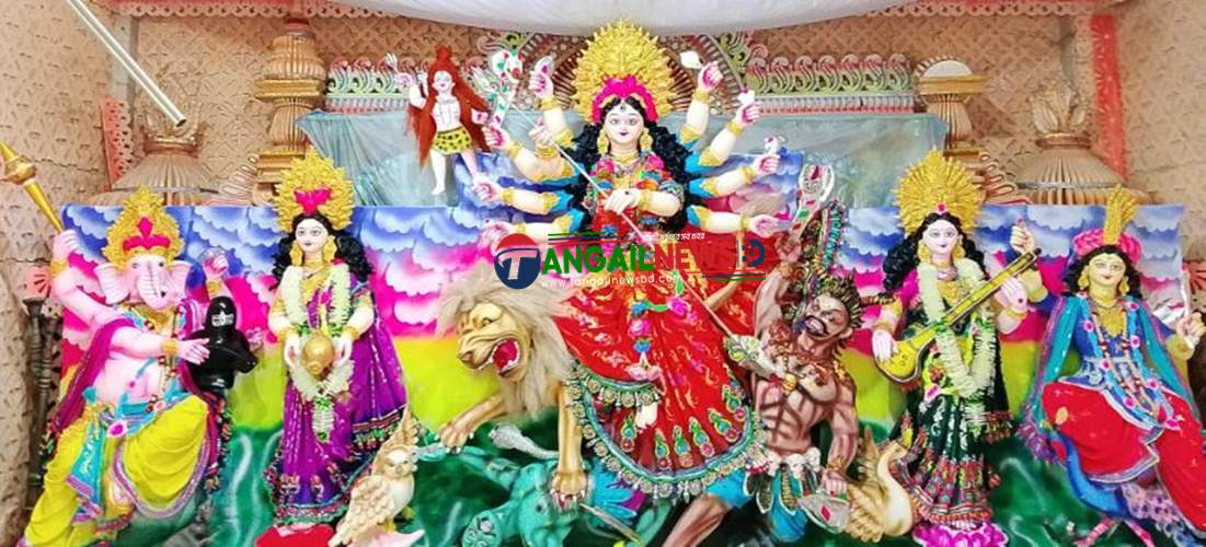 এই উৎসবটি ঘিরে এরই মধ্যে প্রস্তুত হয়েছে সব পূজা মন্ডপ। উৎসবের আমেজ লেগেছে মন্ডপ প্রাঙ্গণে। রোববার (২৮ সেপ্টেম্বর) সকালে টাঙ্গাইল পৌরশহরের প্যাড়াডাইস পাড়া, কলেজ পাড়া, আদালত পাড়া, থানা পাড়ার পূজামন্ডপ ঘুরে এমন চিত্র দেখা গেছে। সরেজমিনে দেখা গেছে, শারদীয় দুর্গাপূজা উপলক্ষে টাঙ্গাইলের মন্ডপগুলোয় উৎসবের প্রস্তুতি এখন চূড়ান্ত পর্যায়ে। প্রতিমা নির্মাণ থেকে শুরু করে প্যান্ডেল সাজানো, আলোকসজ্জা, নিরাপত্তা- কোনো কিছুরই যেন কমতি নেই।মূল গেট পেরিয়ে পূজার প্যান্ডেলের ভেতরে ঢুকতেই চোখে পড়ে নয়নাভিরাম আলোকসজ্জা ও রঙিন সাজসজ্জায় সাজানো মন্ডপ। মূল মন্ডপের ভেতরে চার সন্তান নিয়ে দেবী দুর্গা দাঁড়িয়ে রয়েছেন, একদম চিরচেনা রূপে।