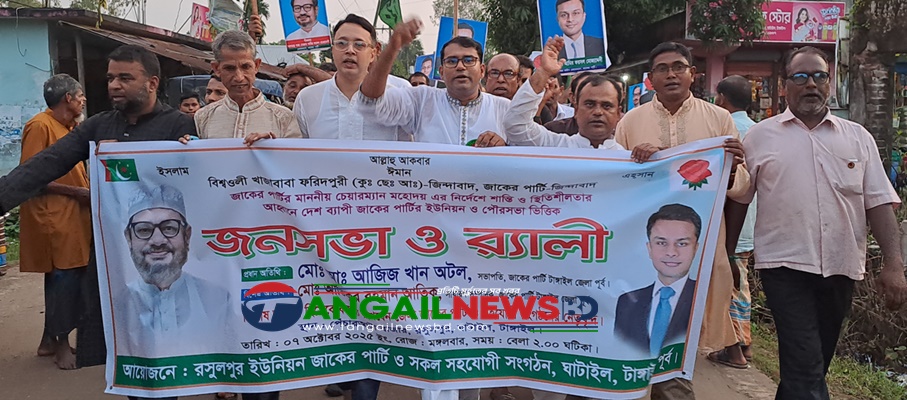 টাঙ্গাইলের ঘাটাইলে জাকের পার্টির চেয়ারম্যানের নির্দেশে কেন্দ্রীয় কর্মসূচীর অংশ হিসেবে জনসভা ও র্যালী অনুষ্ঠিত হয়েছে। বুধবার (৭ অক্টোবর) বিকেলে উপজেলার রসুলপুর ইউনিয়ন জাকের পার্টি ও সকল সহযোগী সংগঠনের আয়োজনে পেঁচাআটার বাজারে জনসভা ও র্যালী অনুষ্ঠিত হয়।