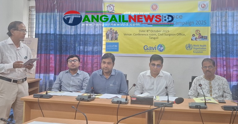 সংবাদ সম্মেলনে জানানো হয়, টাইফয়েড প্রতিরোধে টাঙ্গাইলে ১০ লাখ ১৬ হাজার ১১২ শিশুকে টাইফয়েডের টিকা দেওয়া হবে। ৯ মাস থেকে ১৫ বছরের কম শিশুকে প্রথম দফায় শিক্ষা প্রতিষ্ঠানে চলতি মাসের ১২-৩০ অক্টোবর পর্যন্ত এবং দ্বিতীয় দফায় কমিউনিটি পর্যায়ে নভেম্বর ১ থেকে ১৩ তারিখ পর্যন্ত টিকা দেয়া হবে।