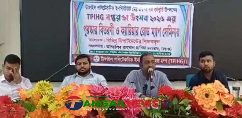 টাঙ্গাইল পলিটেকনিক ইনস্টিটিউট হেল্প গ্রুপের সপ্তম বর্ষপূর্তি পালিত হয়েছে। এ উপলক্ষ্যে পুরস্কার বিতরণ ও ক্যারিয়ার রোডম্যাপ সেমিনার অনুষ্ঠিত হয়েছে। রবিবার (১২ অক্টোবর) দুপুরে টাঙ্গাইল পলিটেকনিক ইনস্টিটিউটের কনফারেন্স রুমে এর আয়োজন করা হয়।