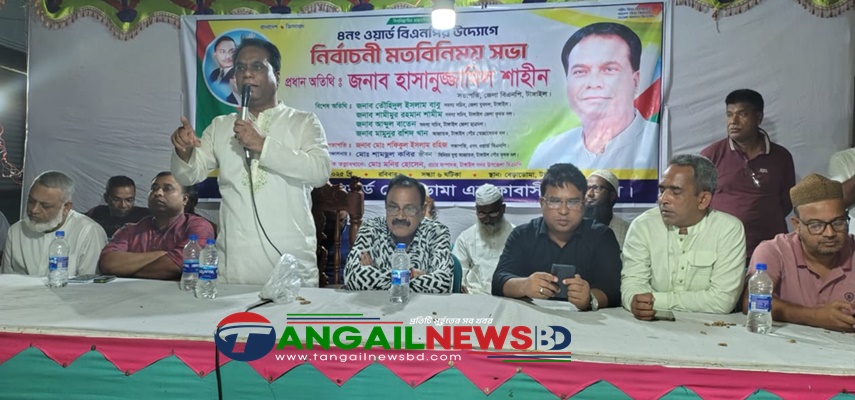 টাঙ্গাইল পৌরসভার ৪নং ওয়ার্ড বিএনপি ও বেড়াডোমা এলাকাবাসীর উদ্যোগে এই ওয়ার্ডের বিএনপির সিনিয়র সহ সভাপতি আলীমের সভাপতিত্বে এই মতবিনিময় সভা অনুষ্ঠিত হয়। এতে প্রধান অতিথি ছিলেন টাঙ্গাইল-৫ (সদর) আসনের ধানের শীষের মনোনয়ন প্রত্যাশী ও জেলা বিএনপির সভাপতি হাসানুজ্জামিল শাহীন।