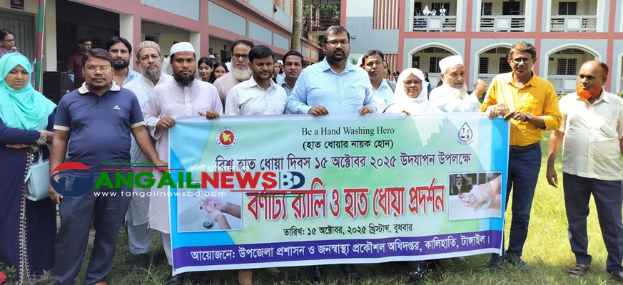 “হাত ধোয়ার নায়ক হোন” প্রতিপাদ্যে বিশ্ব হাত ধোয়া দিবস উদযাপন উপলক্ষে টাঙ্গাইলের কালিহাতী উপজেলাতে বর্ণাঢ্য র‌্যালি ও হাত ধোয়া প্রদর্শনী অনুষ্ঠিত হয়েছে। বুধবার (১৫ অক্টোবর) দিবসটি উপলক্ষে দুপুর ১২ টায় উপজেলা প্রশাসন ও উপজেলা জনস্বাস্থ্য প্রকৌশল অধিদপ্তরের আয়োজনে র‌্যালিটি কালিহাতী পাইলট বালিকা উচ্চ বিদ্যালয় চত্বর প্রদক্ষিণ করে একই চত্বরে এসে হাত ধোয়া প্রদর্শনীতে শিক্ষার্থীদের সক্রিয় অংশগ্রহণে সঠিকভাবে হাত ধোয়ার নিয়ম তুলে ধরা হয়।