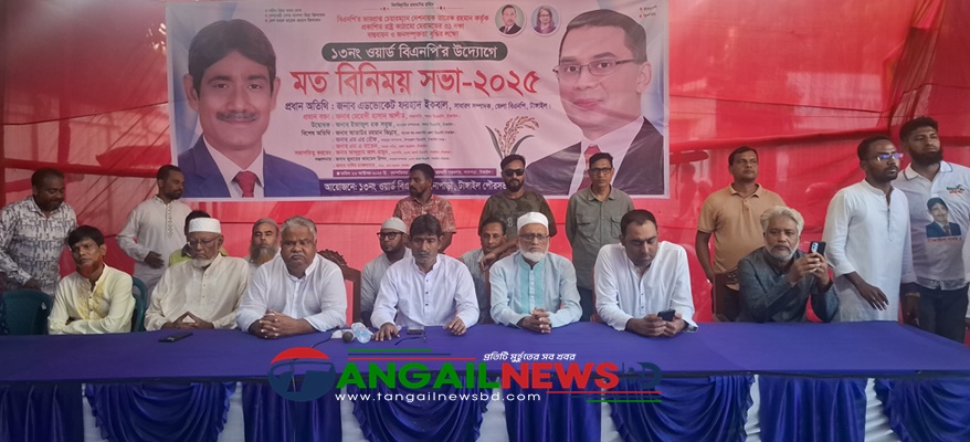 বিএনপির ভারপ্রাপ্ত চেয়ারম্যান তারেক রহমানের ঘোষিত রাষ্ট্র কাঠামো মেরামতের ৩১ দফা বাস্তবায়ন ও জনসম্পৃক্ততা বৃদ্ধির লক্ষে টাঙ্গাইলে বিএনপির মতবিনিময় সভা অনুষ্ঠিত হয়েছে। বৃহস্পতিবার (২৩ অক্টোবর) বিকেলে পৌর শহরের থানাপাড়ায় ১৩নং ওয়ার্ড বিএনপির উদ্যোগে এ সভা অনুষ্ঠিত হয়। এতে প্রধান অতিথি ছিলেন জেলা বিএনপির সাধারণ সম্পাদক ও সংসদ সদস্য প্রার্থী এডভোকেট ফরহাদ ইকবাল।