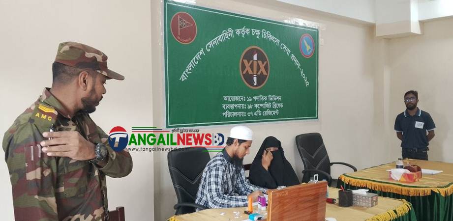বাংলাদেশ সেনাবাহিনীর ১৯ পদাতিক ডিভিশনের উদ্যোগে টাঙ্গাইলের মধুপুরে স্থানীয় গরিব ও দুস্থ জনসাধারণকে বিনামূল্যে চক্ষু চিকিৎসাসেবা প্রদানের লক্ষে মেডিকেল ক্যাম্পেইন অনুষ্ঠিত হয়েছে।বৃহস্পতিবার (৬ নভেম্বর) বাংলাদেশ সেনাবাহিনীর ১৯ পদাতিক ডিভিশনের অধিনস্থ ৯৮ সংমিশ্রিত ব্রিগেডের তত্ত্বাবধানে ৩৭ এডি রেজিমেন্ট এর সার্বিক ব্যবস্থাপনায় এ ক্যাম্পেইন অনুষ্ঠিত হয়।