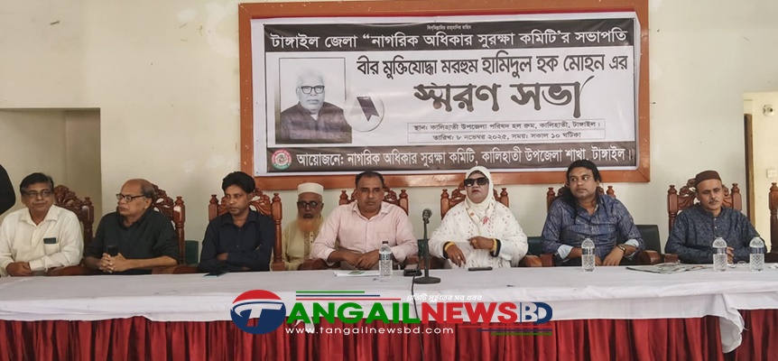 টাঙ্গাইলের কালিহাতী উপজেলা নাগরিক অধিকার সুরক্ষা কমিটির আয়োজনে টাঙ্গাইল জেলা নাগরিক অধিকার সুরক্ষা কমিটির সভাপতি, বীর মুক্তিযোদ্ধা মরহুম হামিদুল হক মোহনের মৃত্যুতে স্মরণ সভা অনুষ্ঠিত হয়েছে।