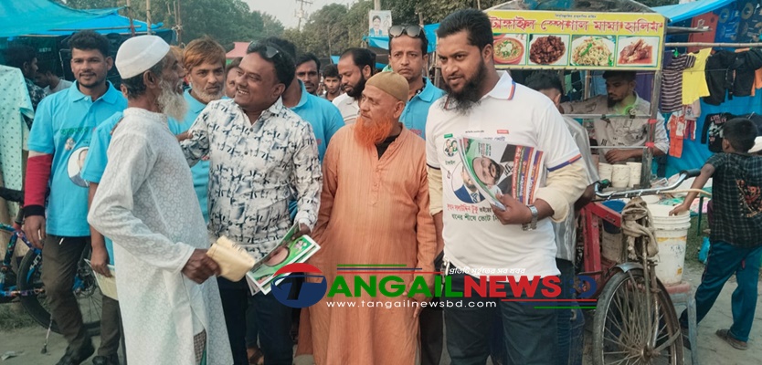 টাঙ্গাইলের সুরুজ হাটে জনগনের মাঝে টুকুর পক্ষে লিফলেট বিতরণ