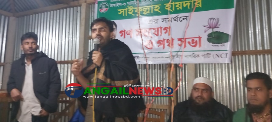 ত্রয়োদশ জাতীয় সংসদ নির্বাচনে টাঙ্গাইল-৩ (ঘাটাইল) আসনে জাতীয় নাগরিক পার্টির (এনসিপি) এমপি প্রার্থী সাইফুল্লাহ হায়দার নির্বাচনী গণসংযোগ শুরু করেছেন। শনিবার (৬ ডিসেম্বর) সকাল থেকে রাত পর্যন্ত তিনি উপজেলা শহর, পৌর এলাকা, গ্রামাঞ্চল ও পাহাড়ি অঞ্চলে গণসংযোগ করেন। এ সময় তিনি সকল ধর্মের মানুষের বাসাবাড়ি, হাট-বাজারের দোকানপাট, পাড়া-মহল্লায় গিয়ে সকল বয়সী ভোটারদের সাথে সৌজন্য স্বাক্ষাৎ করেন এবং কুশলাদি বিনিময় করেন।