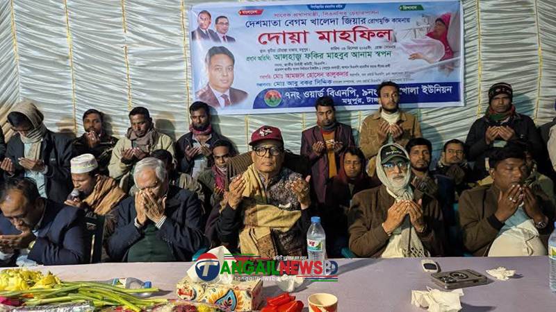 স্টাফ রিপোর্টার ॥ সাবেক প্রধানমন্ত্রী ও বিএনপি চেয়ারপার্সন বেগম খালেদা জিয়ার সুস্থতা ও রোগমুক্তি কামনায় টাঙ্গাইলের মধুপুরে দোয়া মাহফিল অনুষ্ঠিত হয়েছে। সোমবার (৮ ডিসেম্বর) রাতে মধুপুর উপজেলার অরণখোলা ইউনিয়নের ৭ নং ওয়ার্ড বিএনপির উদ্যোগে এ দোয়া মাহফিল অনুষ্ঠিত হয়।