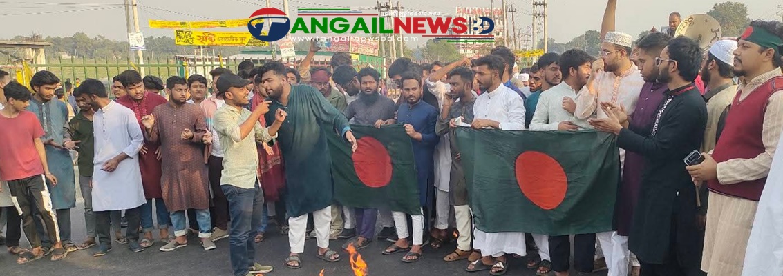 টাঙ্গাইলে হাদির খুনিদের ফাঁসির দাবিতে মহাসড়ক অবরোধ