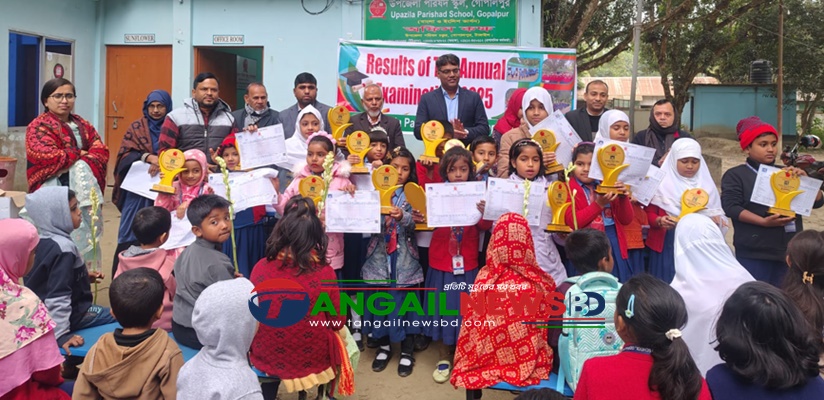 টাঙ্গাইলের গোপালপুর উপজেলা প্রশাসন পরিচালিত উপজেলা পরিষদ স্কুলের বার্ষিক পরীক্ষার ফলাফল প্রকাশ করা হয়েছে। উপজেলা নির্বাহী কর্মকর্তা ও বিদ্যালয় পরিচালনা পর্ষদের সভাপতি জিল্লুর রহমান ফলাফল ঘোষণার উদ্বোধন করেন। এ সময় ২০২৬ শিক্ষাবর্ষে নবভর্তিকৃত শিক্ষার্থীদের ফুল দিয়ে শুভেচ্ছা জানিয়ে বরণ করা হয় এবং ভালো ফলাফলকারী শিক্ষার্থীদের মাঝে পুরস্কার বিতরণ করা হয়।