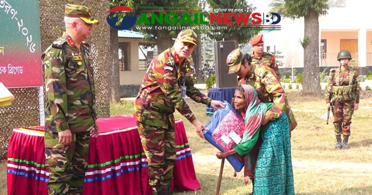 মধুপুরে শীতার্তদের মাঝে সেনাবাহিনীর শীতবস্ত্র বিতরণ