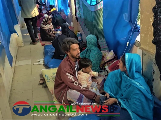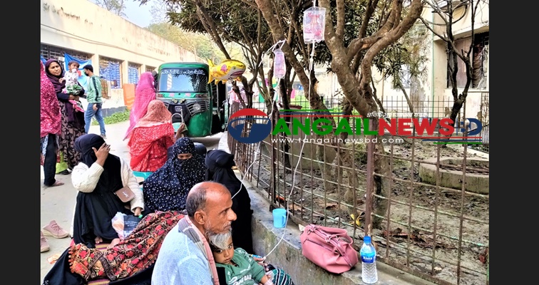 টাঙ্গাইল জেনারেল হাসপাতাল ও মেডিকেল কলেজ হাসপাতালে ডায়রিয়া ও নিউমোনিয়াসহ শীতজনিত রোগীর চাপে চিকিৎসক-নার্সরা দিশেহারা হয়ে পড়েছেন। জেনারেল হাসপাতালে ডায়রিয়ায় আক্রান্ত রোগী আসনের তুলনায় ১০ গুণ ভর্তি রয়েছে। ফলে তাদেরকে বাইরে গাছের সঙ্গে ঝুলিয়ে স্যলাইন দেওয়া হচ্ছে। হাসপাতালে ওষুধ সংকটও চরম আকার ধারণ করেছে। এদিকে, মেডিকেল কলেজ হাসপাতালে ওয়ার্ড না থাকায় ডায়রিয়ায় আক্রান্ত রোগীদের জেনারেল হাসপাতালে পাঠিয়ে দেওয়া হচ্ছে। রোগীদের অধিকাংশই শিশু ও প্রবীণ।