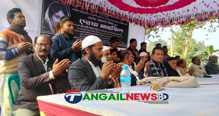 টাঙ্গাইলের দেলদুয়ার উপজেলায় বেগম খালেদা জিয়ার আত্মার মাগফেরাত কামনায় দোয়া মাহফিল অনুষ্ঠিত হয়েছে। শুক্রবার (১৬ জানুয়ারি) টাঙ্গাইল ফাউন্ডেশনের উদ্যোগে উপজেলার এলাসিন ইউনিয়নের মোমিননগর বাজারে দোয়া মাহফিল অনুষ্ঠিত হয়। দোয়া মাহফিলে প্রধান অতিথি ছিলেন টাঙ্গাইল-৬ (দেলদুয়ার-নাগরপুর) আসনের বিএনপি মনোনীত প্রার্থী রবিউল আওয়াল লাভলু।