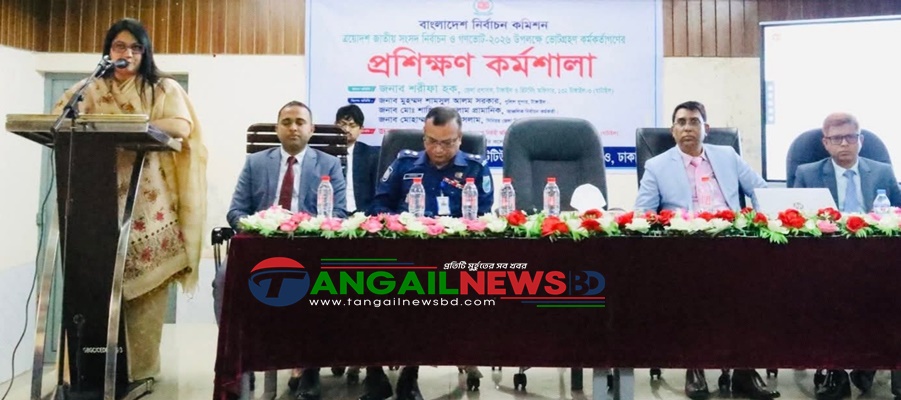 টাঙ্গাইলের ঘাটাইল উপজেলায় ত্রয়োদশ জাতীয় সংসদ নির্বাচন ও গণভোট-২০২৬ এর দায়িত্বপ্রাপ্ত ভোট গ্রহণ কর্মকর্তাদের প্রশিক্ষন কর্মশালা অনুষ্ঠিত হয়েছে। রবিবার (২৫ জানুয়ারী) ঘাটাইল উপজেলা পরিষদ মিলনায়তনে প্রশিক্ষন কর্মশালা অনুষ্ঠিত হয়। নির্বাচনী প্রশিক্ষন ইনস্টিউট ঢাকা এ প্রশিক্ষন কর্মশালার আয়োজন করে। এতে প্রধান অতিথি হিসেবে উপস্থিত ছিলেন টাঙ্গাইলের জেলা প্রশাসক ও রিটার্নিং অফিসার শরীফা হক। এ সময় তিনি সর্বোচ্চ নিষ্ঠা ও নিরপেক্ষতার সাথে দায়িত্ব পালন করতে ভোট গ্রহণ কর্মকর্তাদের নির্দেশনা প্রদান করেন।