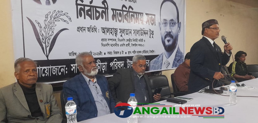 আসন্ন ত্রয়োদশ জাতীয় নির্বাচন উপলক্ষে টাঙ্গাইল-৫ (সদর) আসনে জাতীয়তাবাদী দল বিএনপির ধানের শীর্ষ প্রতীকের প্রার্থী সুলতান সালাউদ্দিন টুকুর মতবিনিময় সভা অনুষ্ঠিত হয়েছে। সোমবার (২৬ জানুয়ারি) বিকেলে টাঙ্গাইল জেলা ক্রীড়া সংস্থার অডিটোরিয়ামে টাঙ্গাইল সম্মিলিত ক্রীড়া পরিষদ আয়োজিত মতবিনিময় সভার প্রধান অতিথি হিসেবে ভার্চুয়াল বক্তব্য রাখেন ধানের শীর্ষ প্রতীকের প্রার্থী সুলতান সালাউদ্দিন টুকু।