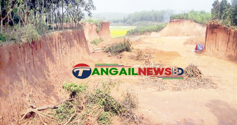 টাঙ্গাইলের মির্জাপুরে চলছে পাহাড়ের টিলা কেটে লাল মাটি বিক্রির মহোৎসব। পাহাড় ধ্বংস করে মাটি বিক্রি করায় একদিকে হুমকির মুখে পড়ছে প্রাকৃতিক পরিবেশ। অন্যদিকে জীববৈচিত্র্য ও ফলজবৃক্ষসহ উজাড় হচ্ছে বনাঞ্চল। এই লাল মাটি বিক্রির উৎসব মাসব্যাপি ধরে চললেও প্রশাসন শক্ত হাতে দমনের ব্যবস্থা নিচ্ছে না বলে অভিযোগ করেছেন পাহাড়ি অঞ্চলের সাধারণ মানুষ। লালমাটি বহনকারি ড্রাম্প ট্রাকের চাকার দাপটে খানাখন্দক হচ্ছে গ্রামীণ রাস্তা।