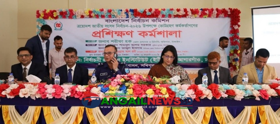 টাঙ্গাইলের সখীপুর উপজেলায় ত্রয়োদশ জাতীয় সংসদ নির্বাচন ও গণভোট-২০২৬ এর দায়িত্বপ্রাপ্ত ভোট গ্রহণ কর্মকর্তাদের প্রশিক্ষন কর্মশালা অনুষ্ঠিত হয়েছে। সোমবার (২৬ জানুয়ারী) সখীপুর উপজেলা পরিষদ মিলনায়তনে প্রশিক্ষন কর্মশালা অনুষ্ঠিত হয়। নির্বাচনী প্রশিক্ষন ইনস্টিউট ঢাকা এ প্রশিক্ষন কর্মশালার আয়োজন করে। এতে প্রধান অতিথি হিসেবে উপস্থিত ছিলেন টাঙ্গাইলের জেলা প্রশাসক ও রিটার্নিং অফিসার শরীফা হক।