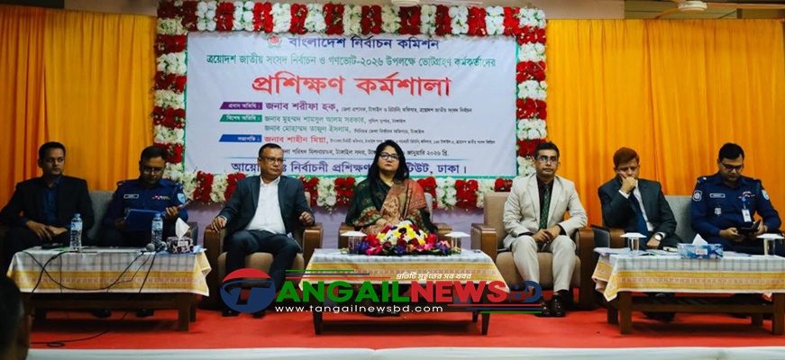 টাঙ্গাইল সদর উপজেলায় ত্রয়োদশ জাতীয় সংসদ নির্বাচন ও গণভোট-২০২৬ এর দায়িত্বপ্রাপ্ত ভোট গ্রহণ কর্মকর্তাদের প্রশিক্ষন কর্মশালা অনুষ্ঠিত হয়েছে। শুক্রবার (৩০ জানুয়ারী) সদর উপজেলা পরিষদ মিলনায়তনে প্রশিক্ষণ কর্মশালা অনুষ্ঠিত হয়। নির্বাচনী প্রশিক্ষণ ইনস্টিউট ঢাকা এ প্রশিক্ষণ কর্মশালার আয়োজন করে। প্রশিক্ষণ কর্মশালায় প্রধান অতিথি হিসেবে উপস্থিত ছিলেন টাঙ্গাইলের জেলা প্রশাসক ও রিটার্নিং অফিসার শরীফা হক।