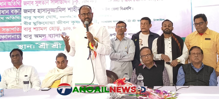 বিএনপির কেন্দ্রীয় প্রচার সম্পাদক ও টাঙ্গাইল-৫ (সদর) আসনের ধানের শীষ প্রতীকের প্রার্থী সুলতান সালাউদ্দিন টুকুর পক্ষে ঐক্যবদ্ধভাবে কাজ করার ঘোষণা দিয়েছেন টাঙ্গাইলের সনাতনী ধর্মালম্বীরা। শুক্রবার (৩০ জানুয়ারি) বেলা ১২টার দিকে শহরের শ্রী শ্রী কালীবাড়ী মন্দির প্রাঙ্গণে বাংলাদেশ পূজা উদযাপন ফ্রন্ট টাঙ্গাইল জেলা শাখার উদ্যোগে আয়োজিত সনাতনী সমাবেশে এ ঘোষণা দেওয়া হয়। এ সময় উপস্থিত সনাতনী সম্প্রদায়ের নেতাকর্মীরা ধানের শীষের পক্ষে স্লোগান দেন।