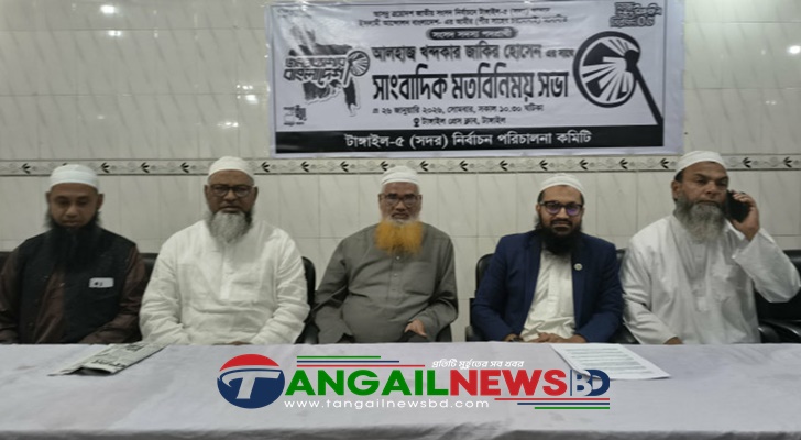 টাঙ্গাইল-৫ (সদর) আসনে ইসলামী আন্দোলন বাংলাদেশ এর প্রার্থী জাকির হোসেন সাংবাদিকদের সাথে মতবিনিময় সভা করেছেন। সোমবার (২৬ জানুয়ারি) দুপুরে টাঙ্গাইল প্রেসক্লাবের অডিটোরিয়ামে মতবিনিময় সভা অনুষ্ঠিত হয়।