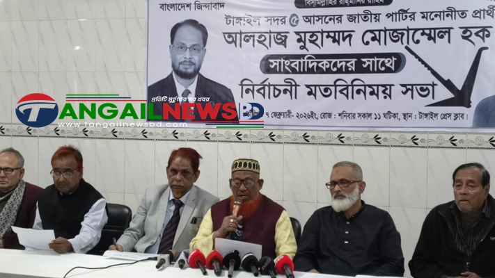 লেভেল প্লেয়িং ফিল্ড না থাকা ও বিভিন্নভাবে হামলার অভিযোগ এনে টাঙ্গাইল-৫ (সদর) আসনে জাতীয় পার্টি মনোনীত (লাঙ্গল) প্রতিকের প্রার্থী মোজাম্মল হক সাংবাদিক সম্মেলন করেছেন। শনিবার (৭ ফেব্রুয়ারী) দুপুরে টাঙ্গাইল প্রেসক্লাবের অডিটোরিয়ামে সংবাদ সম্মেলন অনুষ্ঠিত হয়।