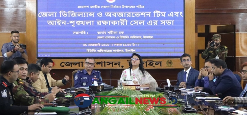 টাঙ্গাইলে ত্রয়োদশ জাতীয় সংসদ নির্বাচন উপলক্ষ্যে গঠিত জেলা ভিজিল্যান্স ও অবজারভেশন টিম এবং আইনশৃঙ্খলা রক্ষাকারী সেলের সভা অনুষ্ঠিত হয়েছে। রবিবার (৮ ফেব্রুয়ারী) দুপুরে টাঙ্গাইল জেলা প্রশাসনের আয়োজনে জেলা প্রশাসকের কার্যালয়ের সম্মেলন কক্ষে এ সভা অনুষ্ঠিত হয়। সভায় সভাপতিত্ব করেন টাঙ্গাইলের জেলা প্রশাসক ও রিটার্নিং অফিসার শরীফা হক।
