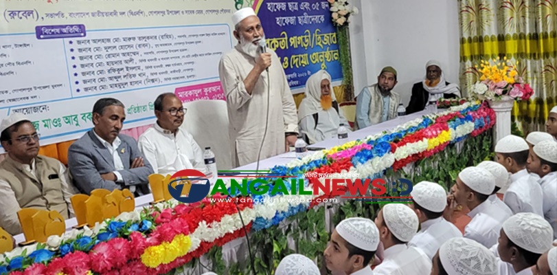 টাঙ্গাইলের গোপালপুরে সুনামধন্য শিক্ষা প্রতিষ্ঠান মারকাজুল কুরআন মাদ্রাসার প্রিন্সিপাল হাফেজ মাওলানা আবু বকর সিদ্দিক মারকাজুল কুরআন মাদ্রাসার উদ্যোগে রবিবার (৮ ফেব্রুয়ারি) সন্ধ্যায় মাদ্রাসা প্রাঙ্গণে ২৮ জন হাফেজ ছাত্রকে বরকতি পাগড়ি এবং ৫ জন হাফেজা ছাত্রীকে হিজাব প্রদান ও দোয়া অনুষ্ঠান অনুষ্ঠিত হয়েছে। অনুষ্ঠানে পাগড়ি প্রদান, নসিয়ত ও দোয়া পরিচালনা করেন পীরে কামেল হাফেজ হযরত মাওলানা শামসুজ্জামান খান। এছাড়া দোয়ার প্রস্তুতি ও পরামর্শ প্রদান করেন আসাদুজ্জামান মাদরাসা প্রিন্সিপাল হাফেজ হযরত মাওলানা মাহফুজুর রহমান।
