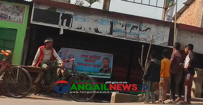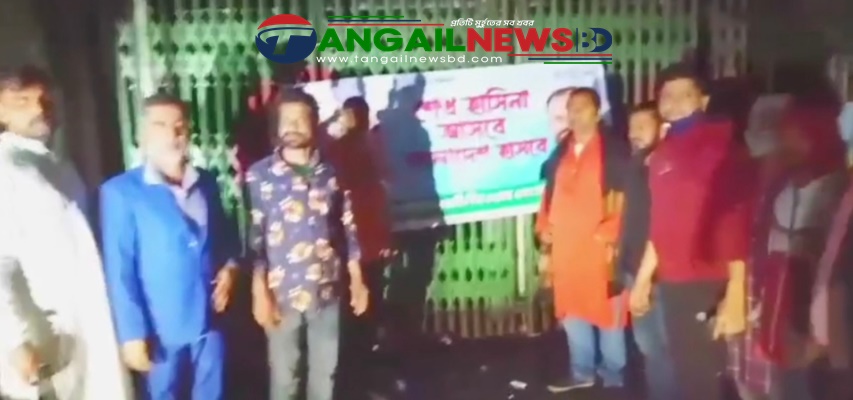 গোপালপুরে আওয়ামী লীগ অফিসে ব্যানার উত্তোলন ও জয় বাংলা শ্লোগান