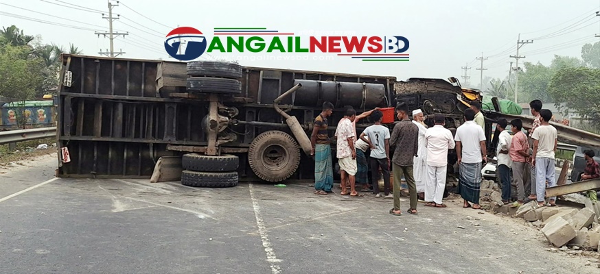 টাঙ্গাইলের মির্জাপুর উপজেলার শুভুল্যা সেতুর পশ্চিম পাশে একটি কাভার্ড ভ্যান উল্টে যাওয়ার ঘটনা ঘটেছে। এতে উল্টে যাওয়া কাভার্ড ভ্যানটির জ্বালানি ট্যাংক থেকে রাস্তায় পড়তে থাকা ডিজেল বালতি, পলিথিনসহ বিভিন্ন পাত্রে তুলে নিয়ে যেতে দেখা গেছে স্থানীয় কয়েকজনকে। বৃহস্পতিবার (১২ মার্চ) সকাল সাড়ে ৭টার দিকে উত্তরাঞ্চলগামী সিরাজুল মোটরস নামের একটি কাভার্ড ভ্যান নিয়ন্ত্রণ হারিয়ে সড়কের ওপর আড়াআড়িভাবে উল্টে যায়।