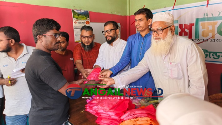 টাঙ্গাইল শহরে ছিন্নমূল মানুষের মাঝে ঈদ উপহার পোশাক বিতরণ