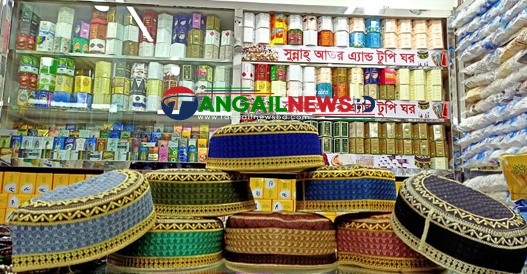 টাঙ্গাইলে ঈদের এই মুহুর্তে ভিড় আতর-টুপির দোকানে