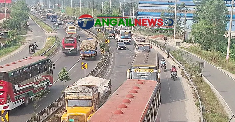 ঈদের ছুটি শেষে কর্মস্থল রাজধানী ঢাকাসহ বিভিন্ন জেলায় ফিরতে শুরু করেছে মানুষ। এতে ঢল নেমেছে মহাসড়কে। এর ফলে ঢাকা-টাঙ্গাইল-যমুনা সেতু মহাসড়কে যানবাহনের চাপও বৃদ্ধি পেয়েছে। শুক্রবার (২৭ মার্চ) দুপুর থেকেই মহাসড়কের বিভিন্ন স্থানে যানবাহনের চাপ বাড়তে থাকে। গণপরিবহন না পেয়ে অনেকেই ঝুঁকি নিয়ে খোলা ট্রাক ও পিকআপে করে কর্মস্থলে ফিরছেন। এদিকে যমুনা সেতু দিয়ে গত ২৪ ঘণ্টায় ৩৭ হাজার ১১০টি যানবাহন পারাপার হয়েছে। এতে টোল আদায় হয়েছে দুই কোটি ৯৮ লাখ ৮০ হাজার ৬৫০ টাকা।