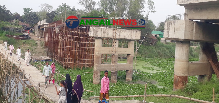 মির্জাপুরে নদীর উপর ব্রিজ নির্মান শেষ না হওয়ায় তিন ইউনিয়নবাসী চরম দুর্ভোগে