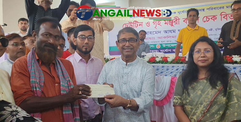 বাসাইলে ঢেউটিন ও গৃহ চেক বিতরণ