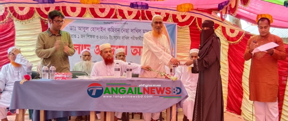 টাঙ্গাইলের ঘাটাইল উপজেলায় ঐতিহ্যবাহী আনেহলা ডা. আবুল হোসাইন কে.এন দাখিল মাদরাসার এসএসসি পরীক্ষার্থীদের বিদায়, মিলাদ ও আলোচনা সভা অনুষ্ঠিত হয়েছে। বৃহস্পতিবার (১৬ এপ্রিল) দিনব্যাপী উপজেলার ডা. আবুল হোসাইন কে. এন দাখিল মাদরাসা প্রাঙ্গনে আনুষ্ঠানিকভাবে ২০২৬ সালের এসএসসি পরীক্ষার্থীদের বিদায়ী সংবর্ধনা দোয়া অনুষ্ঠানের আয়োজন করা হয়।